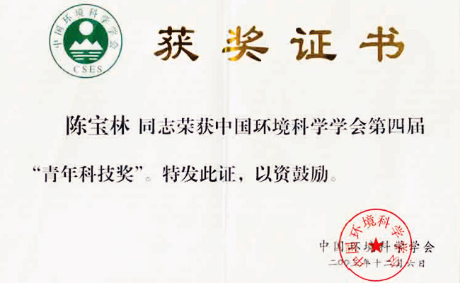 陳寶林獲中國環(huán)境科學(xué)學(xué)會