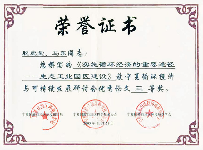脫虎堂馬東獲寧夏循環(huán)經(jīng)濟(jì)