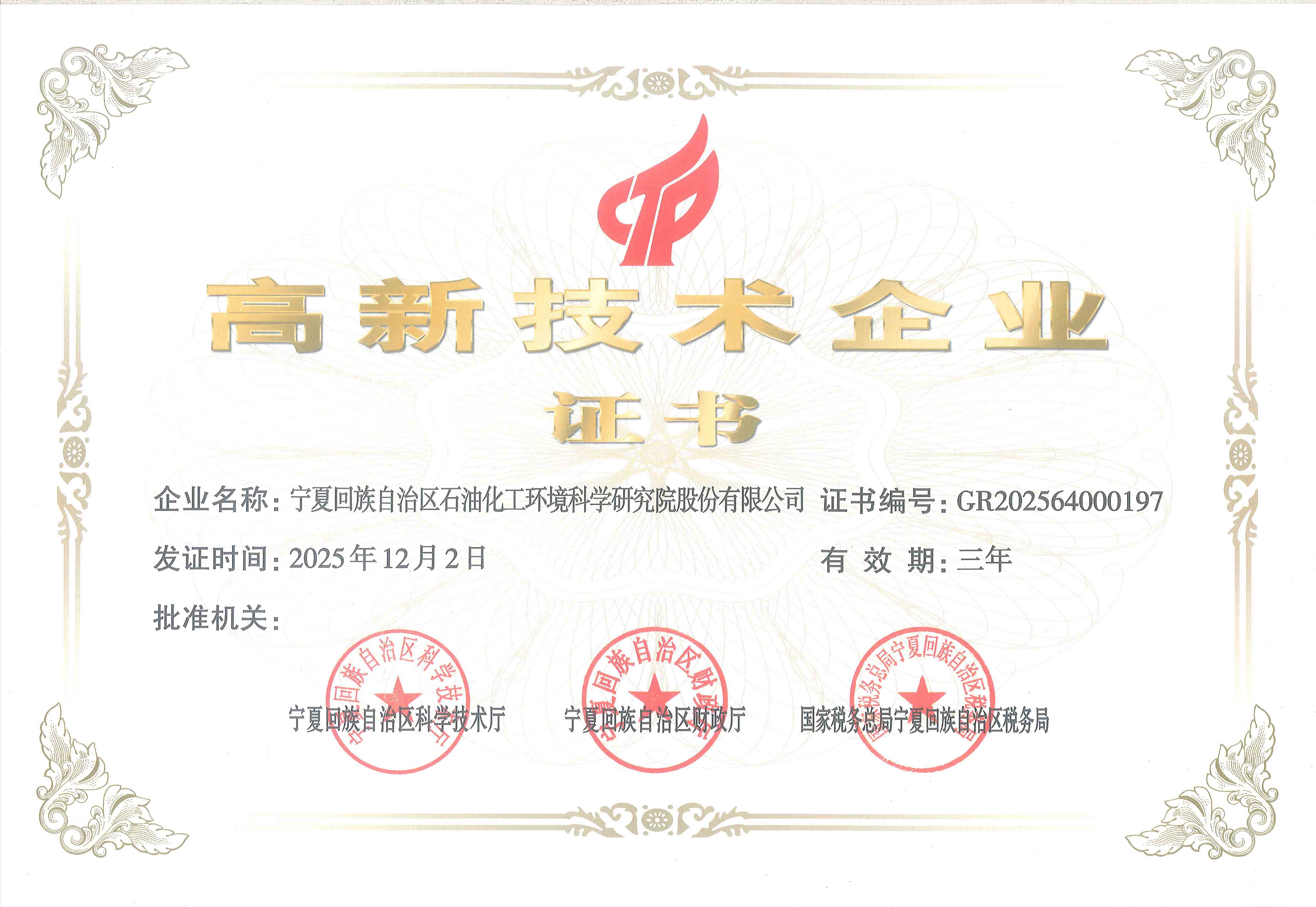 國家高新技術(shù)企業(yè)證書